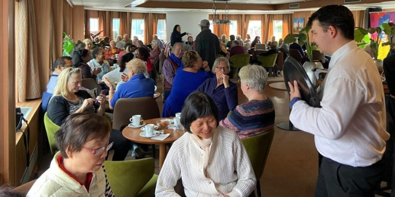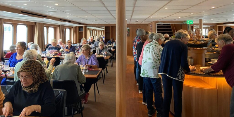 Veel van deze gasten leven alleen of hebben weinig sociale contacten. Dankzij samenwerkingen met muziekprogramma Tour de Chant en de Openbare Bibliotheek Amsterdam (OBA), wisten we senioren te bereiken in buurten als Molenwijk, Reigersbos en Mercatorplein. TCA-taxi’s brachten hen naar de haven, waar onze bemanning hen verwelkomde met warme glimlachen en een feestelijk buffet.